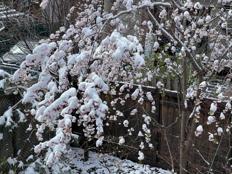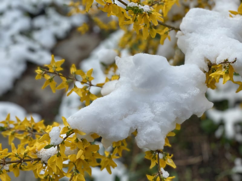I reserve another time to talk about dark things. Just yesterday, like a postscript to its own end, winter returned to lay heavy snow on what had been blooming. A sticky wadding now decorates the trees; an exoskeleton of ice runs along with the wrought iron. The air is no longer one of tenderness and spring. We put on a bit of wool while waiting for it to pass. We obediently keep our backs to the wall. The winegrowers do not see it the same way. It’s because the vines, when they wake up, are so fragile. But we, who are learning to live with covid variants, have many other stings to hope for, and the cold one is only small stuff compared to the horror stories and thromboses.