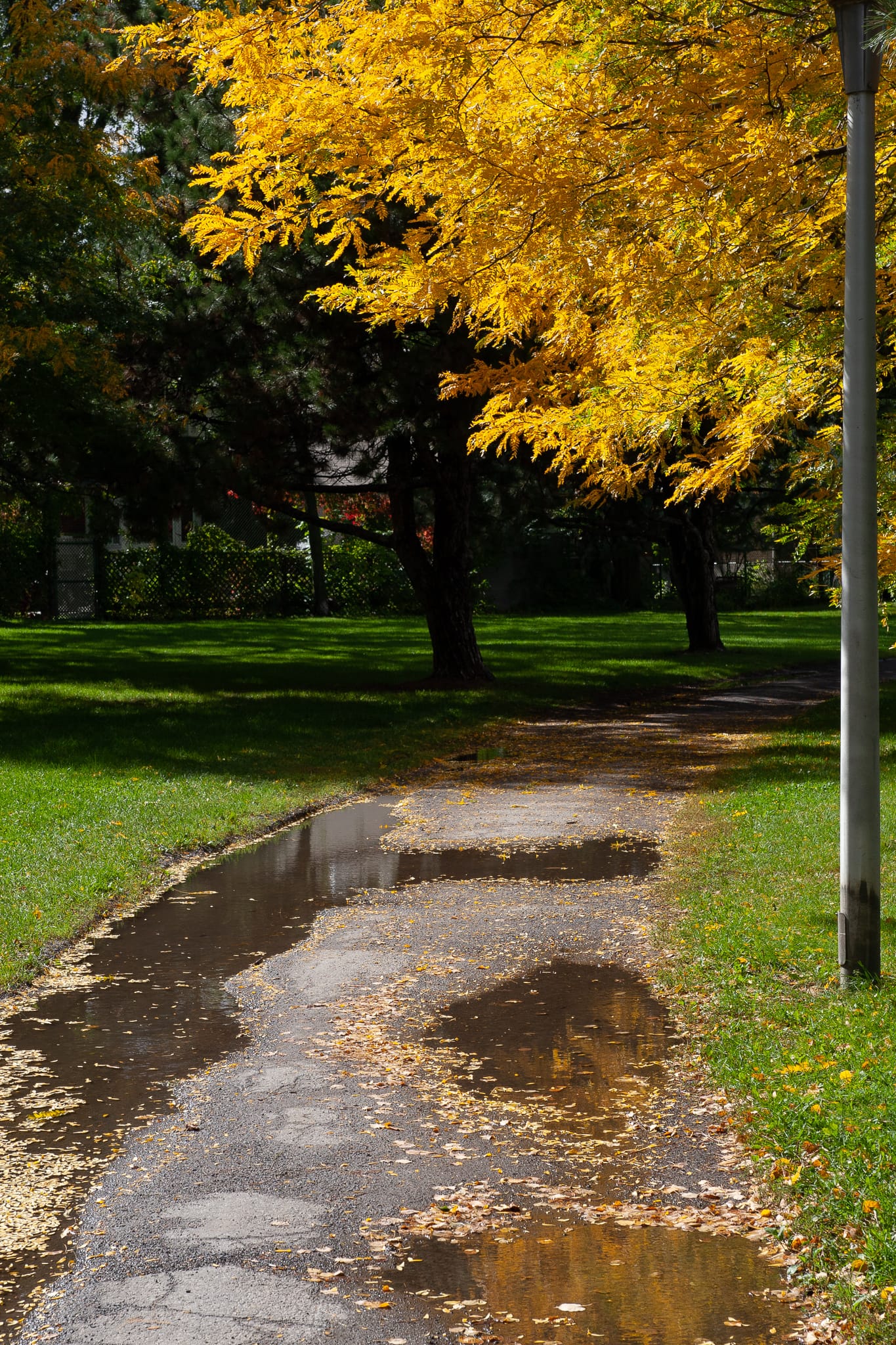 Taking advantage of a lull in both clouds and rain, I decided to go for a walk, starting with the small park near my house where I don’t often set foot anymore. Because of COVID or because it’s the middle of the week, few people were walking there. The park hasn’t really changed in years. It has enough space to not run into anyone and has a small curved walkway that you can walk through for three or four thoughts.