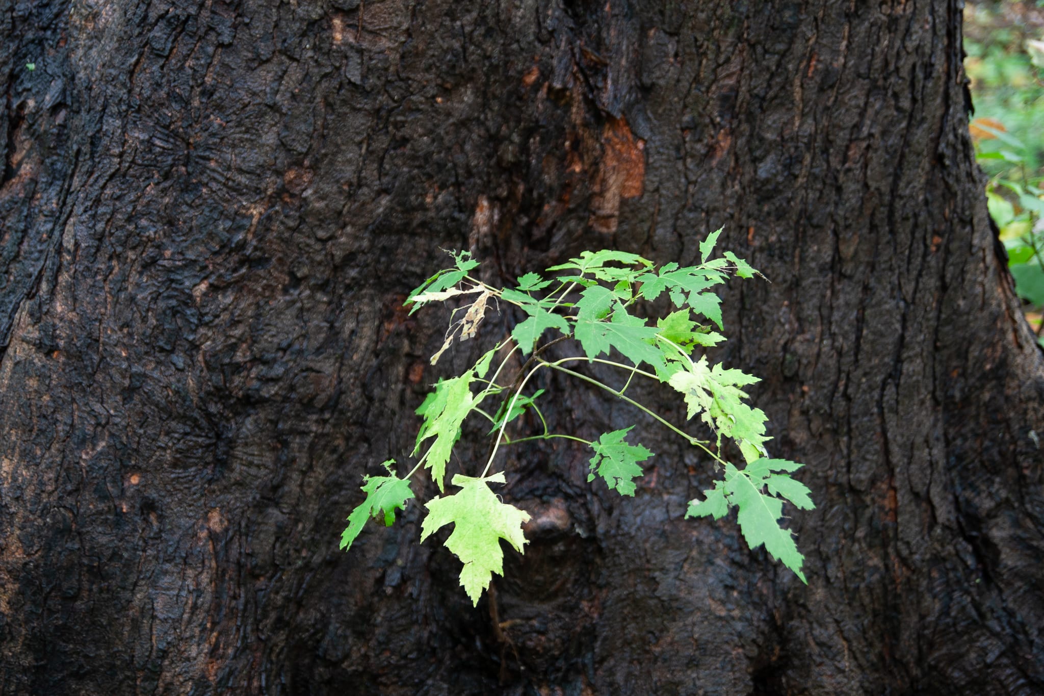 The wooded area is not very large; one quickly crosses it. We immediately regret finding the cement of a sidewalk. I turned around a few times to immerse myself in the quiet and humid smell of the paths, listening to the buzzing of insects – or was it amphibians? – I lost myself among the asymmetrical bodies of the vegetation that gives up, observing the one that persists, and signs the summer green, witnessing that what dies is absorbed by what is alive.