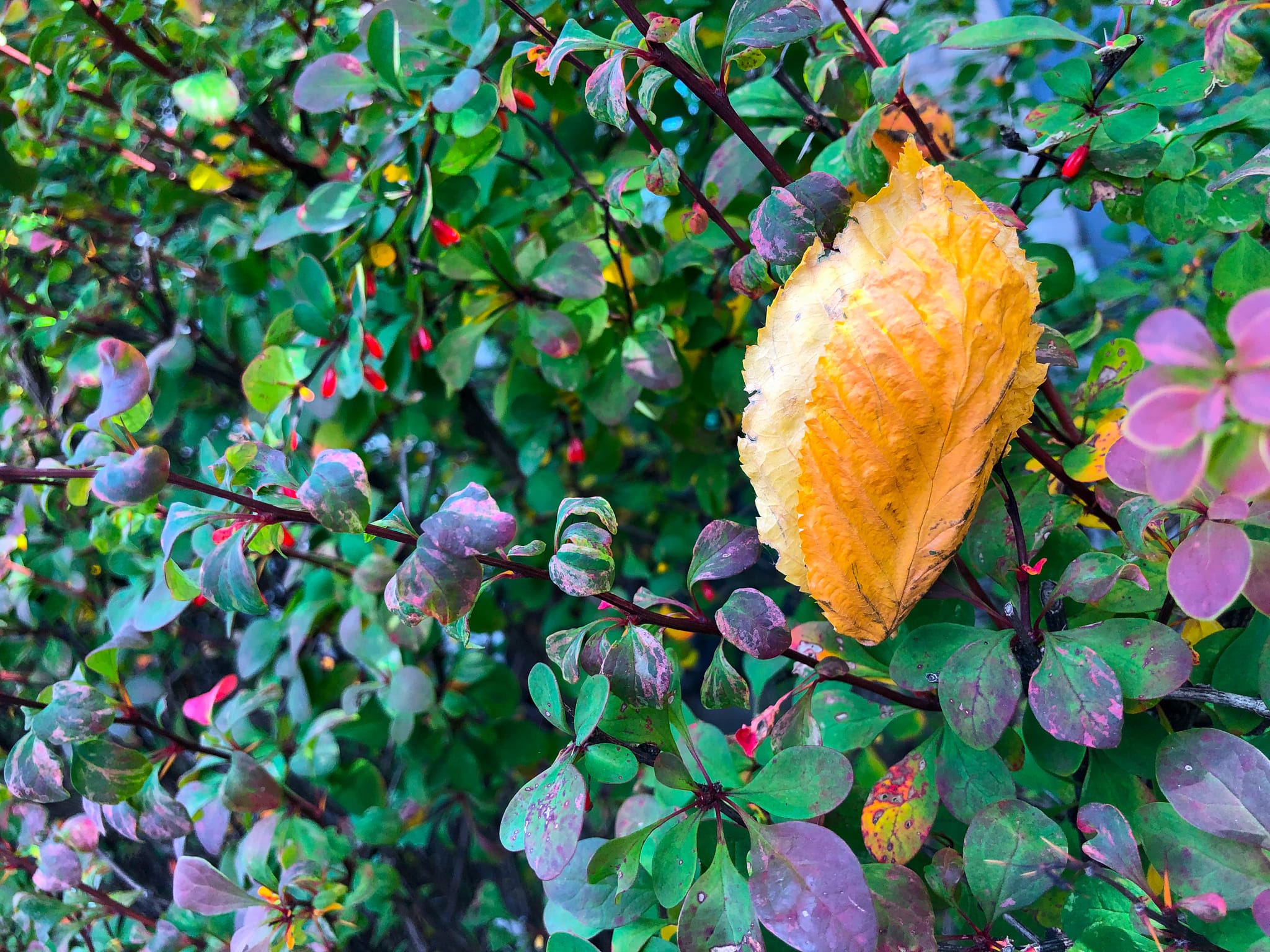 Autumn projects its contrasts. The day was warm, soft for the onlookers who, despite the virus, opened their mouths wide to the sun. As I had to pick up my prescriptions at the pharmacy, I decided to walk there and then do some early errands. I don’t go out much, so I took the opportunity to break in my new boots. I’m used to listening to the urban environment as it is. This time I opted for my headphones and ethereal melodies. As for my eyes, blinded by the sounds, they only regained consciousness when crossing the streets, judging the dangerousness of passers-by, and, like a cat, they sometimes fixed themselves on contrasts of colors.