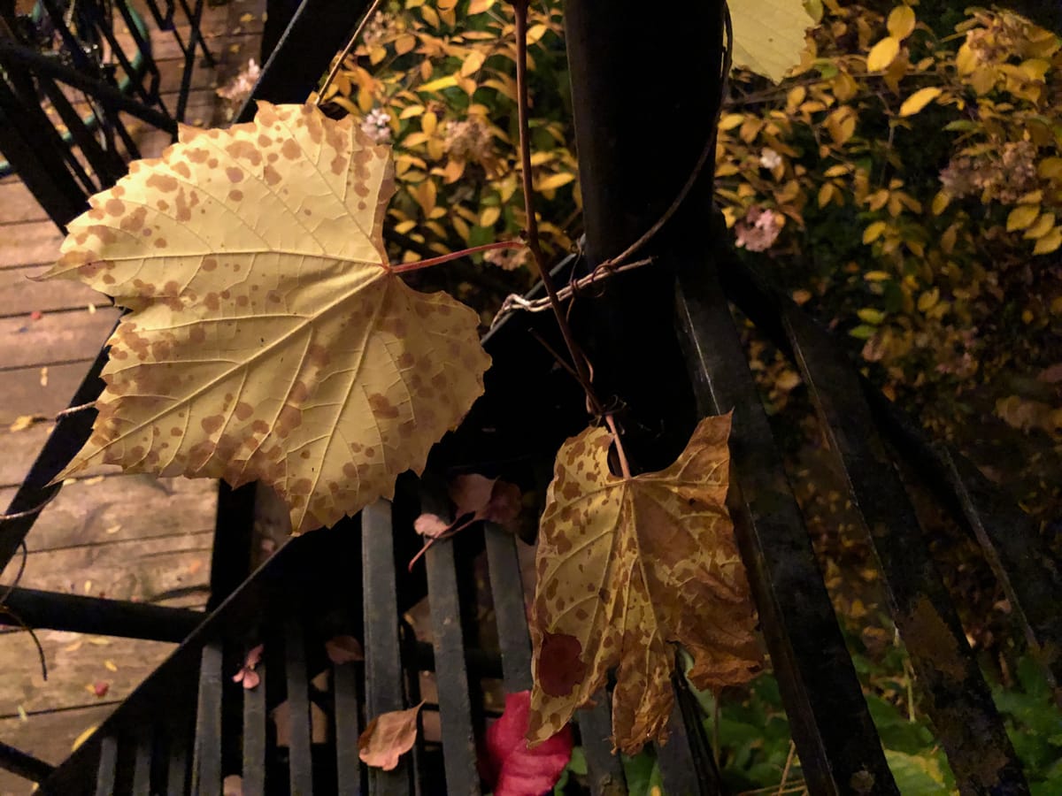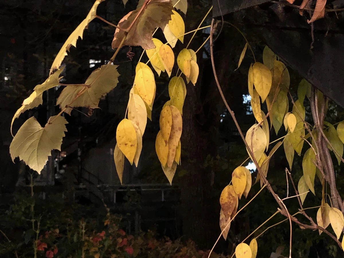 Finally, the ghostly presence of the colors of autumn, at night, illuminated by any light.