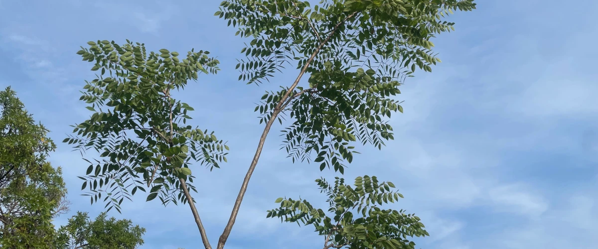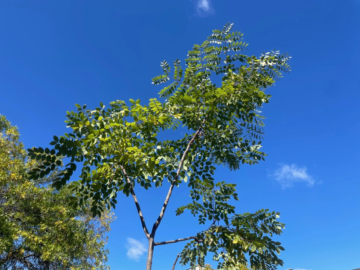 Still, we were glad to see it there, as the Gymnocladus dioicus is reputed to provide good shade when ripe. However, we were puzzled by its appearance. Given its thinness, we wondered when it could offer us the desired cover.