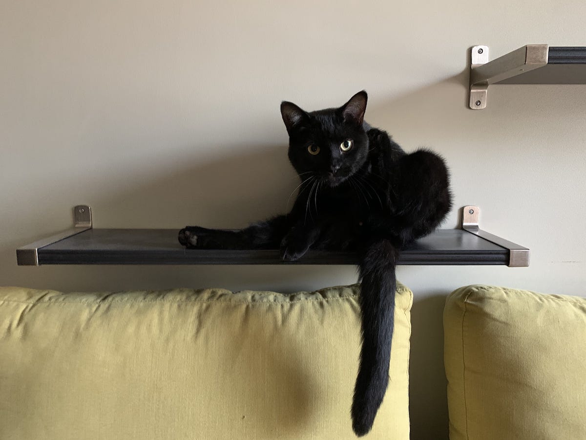 He showed up at the neighbors’ house at the end of March 2020. The province had just gone into containment mode. There were rumors that cats were spreading COVID-19, another of those stories that, like toilet paper, occupied people’s minds for a while. It’s a beautiful black cat, with almost perfect lines. It immediately made me think of Toulouse Lautrec’s cat on the poster.