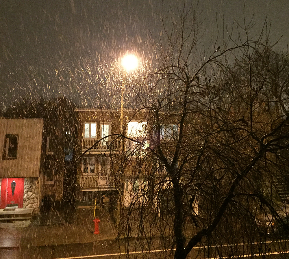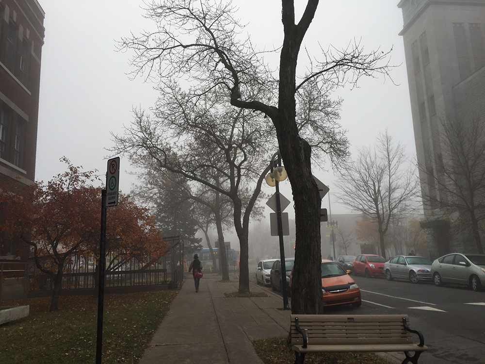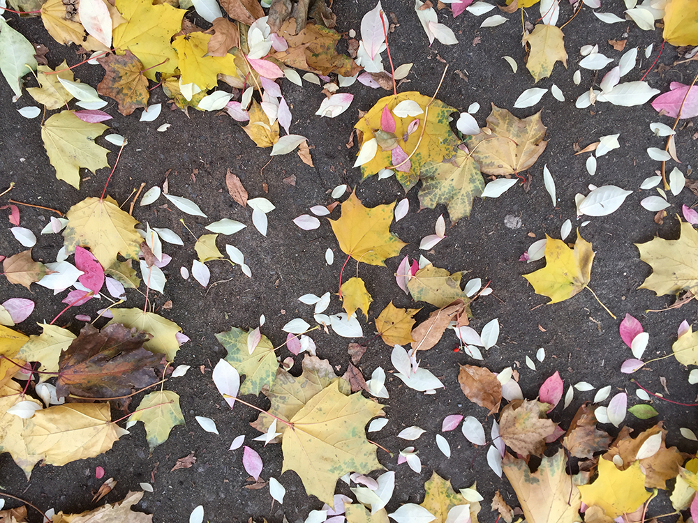 Two weeks have passed without me writing here. I walked, though, watching the fall. It has gone from cold to warm, from a blue sky to a grey one, from dry to wet. The leaves make traces, then soften for good. Sometimes the smooth neutrality of morning fog, sometimes the snow still too translucent to whiten the ground. I have nothing more to say than to observe and not trying to understand but to absorb. I’m inflating my life.