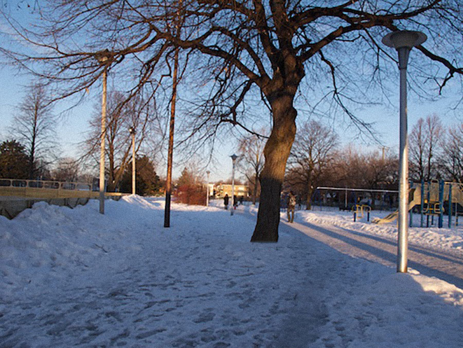Aircraft line up to land, I know that because I live under their road, city dwellers and students hurry to get from point A to their respective point B, City employees are already repairing the ice on the ice rink.
