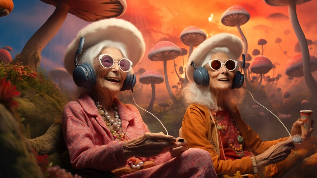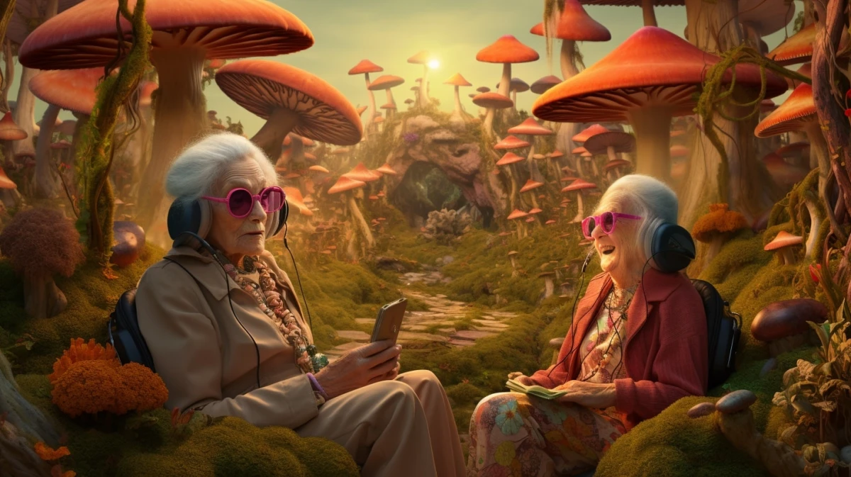 I asked Midjourney's robot to illustrate old ladies hallucinating under the effects of alcohol and drugs. My instructions, prompts in the AI's language, were more or less precise, as was the rendering of certain illustrations.