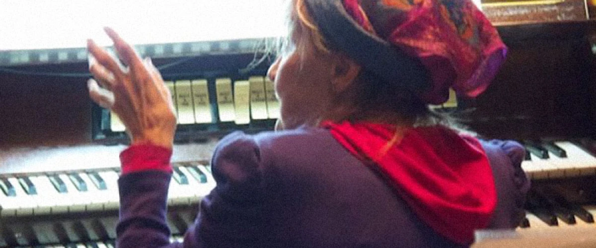 She welcomes you with a beautiful kindness at the church door and climbs sharply in front of you to the organ perched very high, at the second rood chamber. She sits in front of the Casavant, rummages through his many papers, makes jokes, adjusts his flowery scarf.