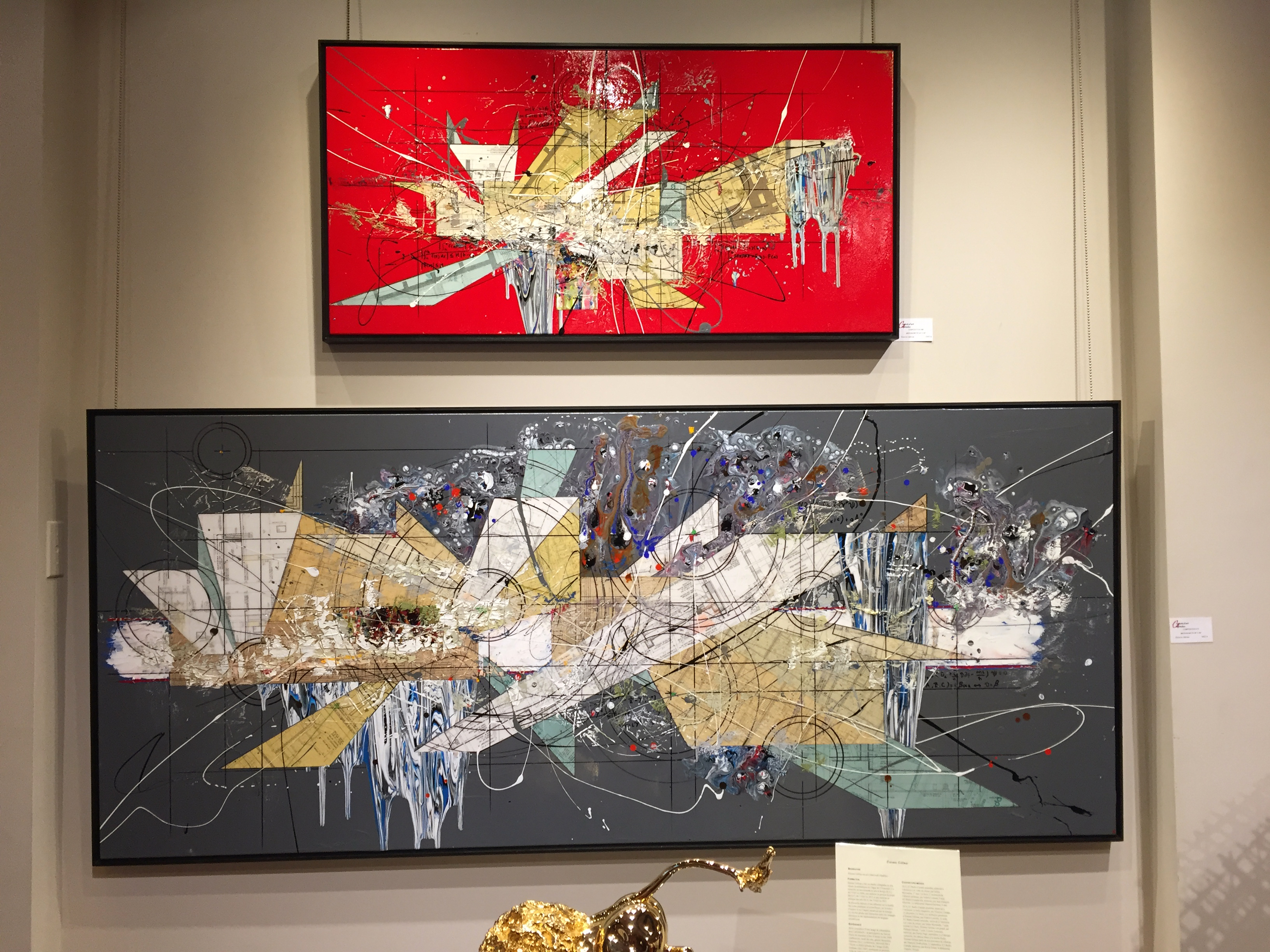 We return to his paintings. I already admired the quality of the work at Spiria and was really interested in learning more about him. I confess to him that I am passionate about geometry and that his works challenge me precisely by this mixture of chaos and order. He is happy, his eyes light up, explains to me what I already feel. The universe is structured, feeds, lives on atavistic algorithms, forged from the impulse of the quantum jolts that compose it. The artist, especially the visual, like a shaman, drinks from this unshakeable and inescapable flow.