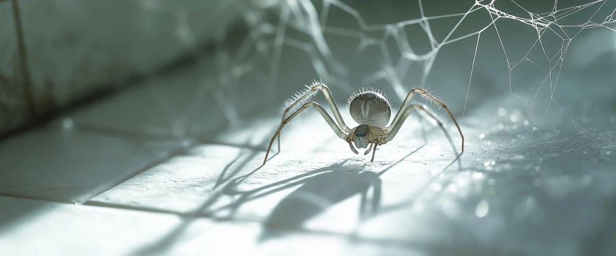 I watched it for a while, trying to understand what it hoped to catch there. A silverfish? It didn’t seem big enough. There are probably living entities I can’t see—tiny, microbial ones—suitable for its modest appetite. My first impulse was to grab a towel and erase its fragile work.