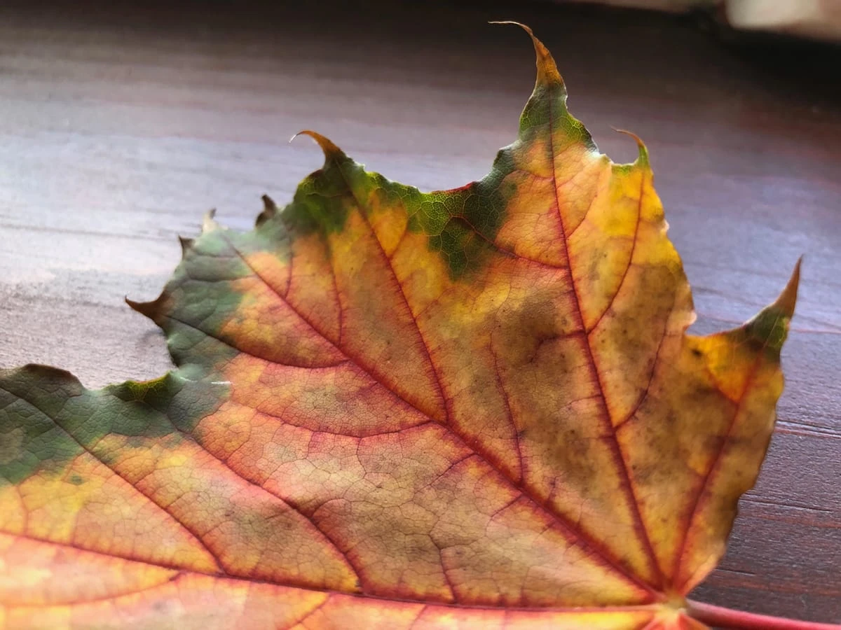 Durant mes rares courses, j’ai pu glaner quelques photos, une feuille morte, fort belle dans la zénitude de sa finalité. Je m’étais promis, en guise d’adieu à l’automne, de la décrire et de philosopher sur sa beauté fractale et la patiente géométrie qu’elle partage avec l’univers. L’ordre existe même s’il fait de l’aléatoire et du chaos.