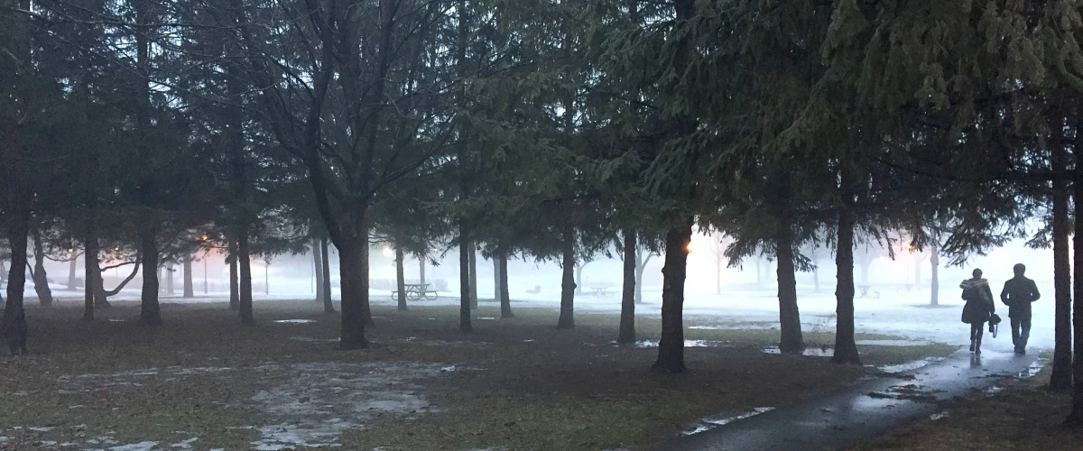L’hiver est d’un aléatoire. Hier, au sortir du bureau, l’air sentait le printemps, voilé comme une précieuse dans un châle de brouillard. Je fus attiré par le contraste doucereux du parc Jarry. J’ai observé pendant un temps de jeunes amoureux qui dérangeaient la quiétude toute relative de l’endroit. Le boulevard Saint-Laurent n’était en effet pas plus calme que d’habitude, mais les arbres, eux, oh, semblaient s’abreuvoir à l’humidité prometteuse.