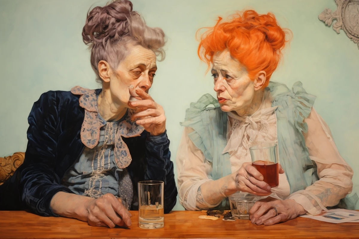 J'ai demandé au robot de Midjourney de m'illustrer de vieilles dames hallucinant sous l'effet de l'alcool et de la drogue. Mes instructions, des prompts dans le langage de l'IA, étaient plus ou moins précises, tout comme le rendu de certaines illustrations.