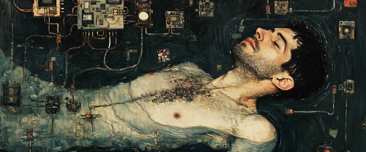 Lorsque viendra le temps où mon souffle cessera, je ne sais si je serai seul face à une lumière aveuglante ou noyé dans un maelstrom de compréhension. Et si je m’apercevais à ce moment-là que je fus finalement un robot, je voudrais alors, j’en suis certain, demander quand même pourquoi le programme doit se terminer ainsi.