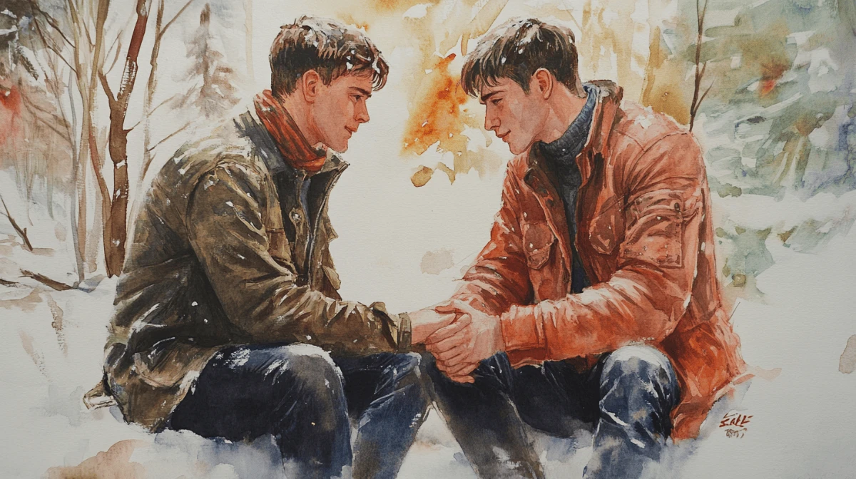 Leur amitié est née des rires qu'ils ont eus ensemble. Le premier aimait être excentrique, tandis que l'autre cachait sa timidité derrière une fierté littéraire juvénile. S'ils se comportaient en amis, rien ne les liait, peut-être par pudeur ou par peur de révéler ce que chacun ressentait en secret. Ils étaient semblables mais différents, deux âmes qui se comprenaient sans mots, deux regards qui se croisaient les jours ordinaires. Cette compréhension mutuelle, ce langage silencieux qu'ils partagent, approfondit leur lien.