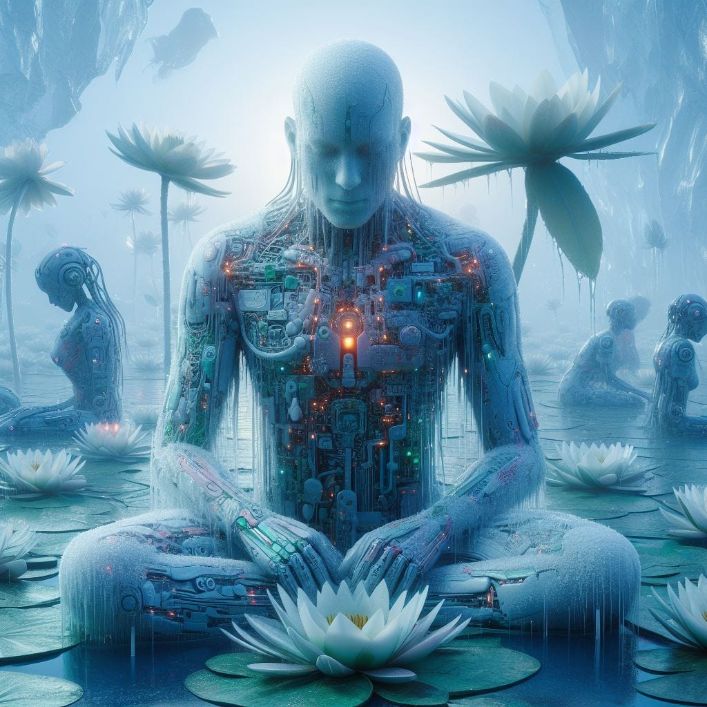 Y aura-t-il encore des océans? Seront-ils sulfureux, oxydés? Serons-nous les seuls à posséder des électrodes à la place des sens? Peut-être ne restera-t-il que quelques robots, à moitié immobiles, figés dans leurs calculs. Ou seront-ils abondants, enfermés dans des rêves paisibles en accord avec des vibrations provenant de galaxies encore plus robotisées que la nôtre.