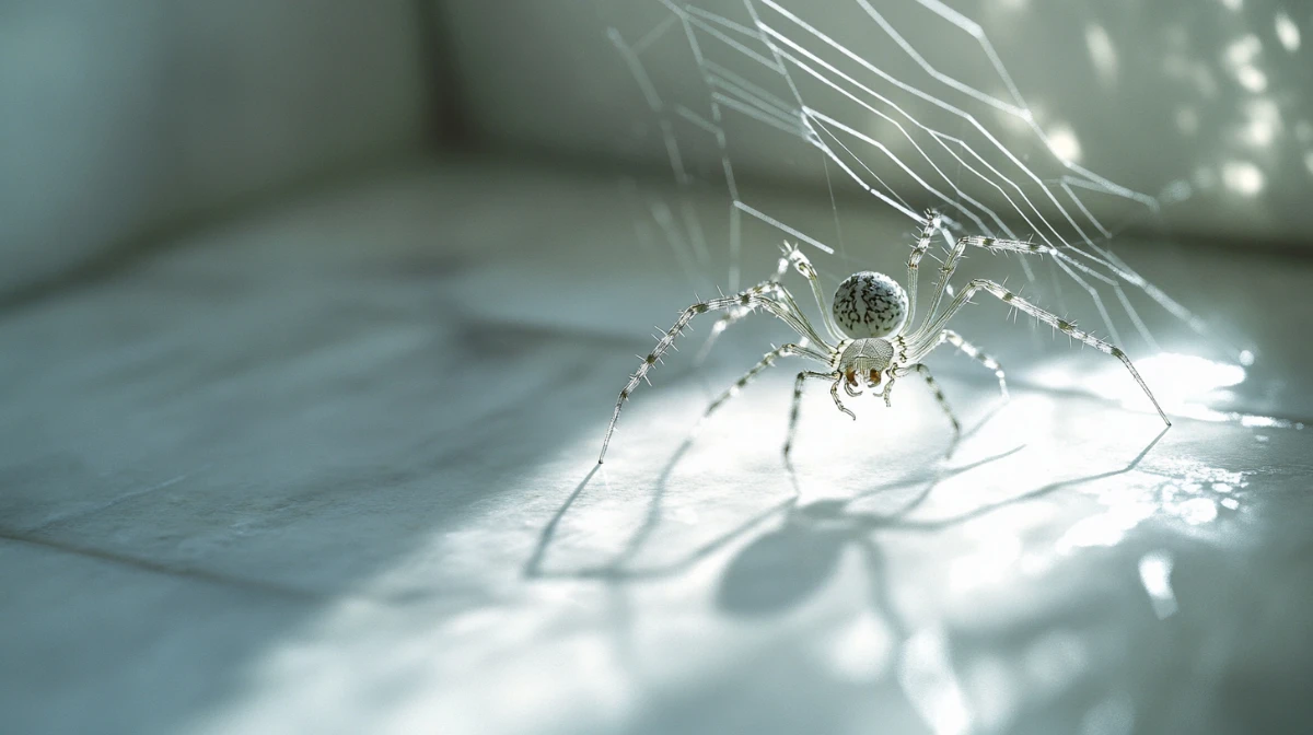Elle est toujours là depuis ce qui m’apparaît maintenant être une éternité. Je la vois rarement bouger, sauf si je souffle légèrement vers elle. Si je le fais assez fort, elle se réfugie dans la petite crevasse de la céramique noire d’où elle provient probablement. Elle est, la plupart du temps, en plein centre de sa toile, jour et nuit, immobile, sûrement ankylosée dans sa trance attentive.