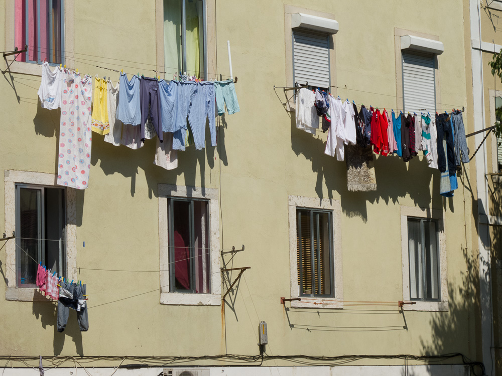 J’ai volé quelques clichés, laissant pendre ma caméra à mon cou, sans bien viser. Les cordes à linge m’ont amusé. Elles sont différentes de celles trouvées en Amérique du Nord. Comme elles ne peuvent se lancer au-dessus des cours arrière, elles longent les façades et les balcons, comme si prises de vertige.