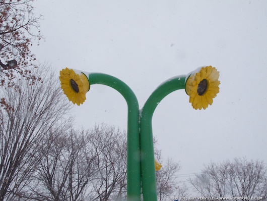 Sept centimètres de neige prévus aujourd’hui. Les visages ont disparu sous les cagoules. On regarde où l’on met les pieds, car plusieurs n’ont pas encore prévu, comme pour les pneus, des chaussures d’hiver. La circulation sera sûrement chaotique, on pestera en pensant soit à Noël (les courses qui ne sont pas faites), soit les vacances dans le Sud (en février quand le moral est au plus bas), soit au printemps à venir.