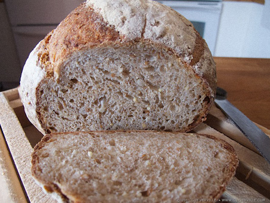 Tout en étant complet, le pain est léger et sucré, et lorsqu’il est bien réussi, il possède une humidité qui le peuple d’alvéoles.