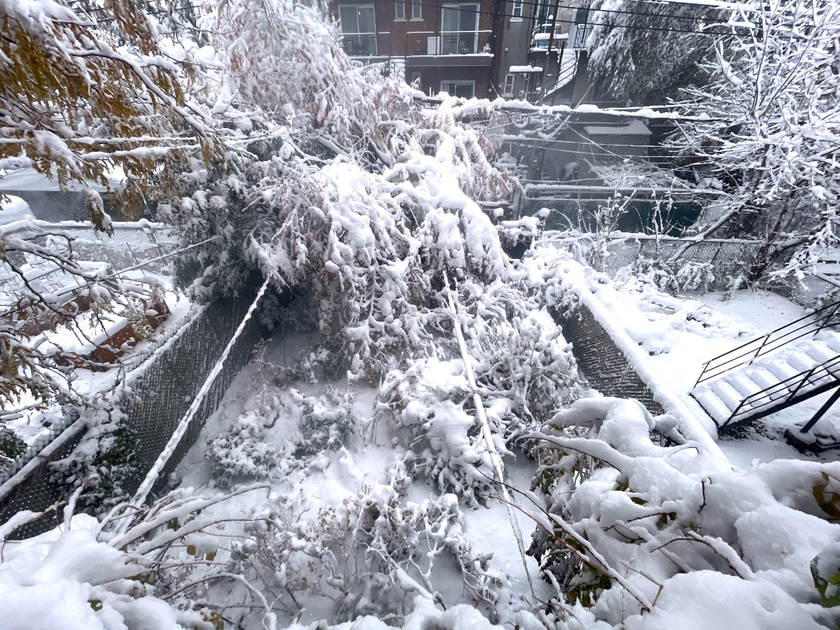 Certains n'ont pas tenu. On entendit dans la nuit nombre de craquements sourds qui précèdent les ruptures. Au matin, des branches gisaient sur les trottoirs, barrant les rues, écrasant des voitures garées, éraflant des toitures. Les voisins sont sortis contempler les dégâts, hochant la tête devant leurs arbustes affaissés, leurs haies brisées.