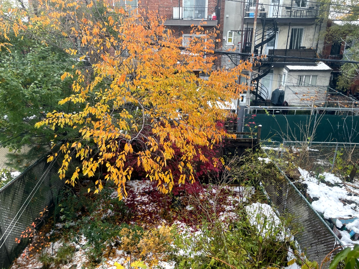 Puis le soleil est revenu. Un soleil d'automne qui n'avait pas encore abdiqué ses droits, qui réchauffait encore avec conviction. La neige a commencé à fondre, d'abord goutte à goutte, puis en ruisseaux. Et le cerisier, lentement, s'est relevé. Branche par branche, il a repris sa posture. Au bout de deux jours, il était debout, intact, toutes ses branches se balançant mollement comme autant de doigts d’honneur adressés à la mauvaise tempête.
