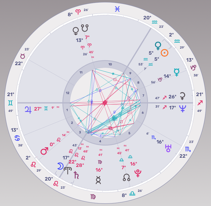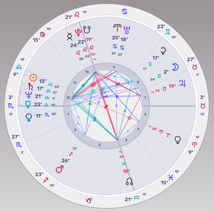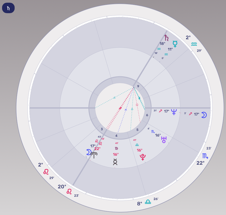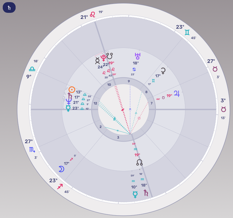 L’homme politique fait face à son destin, Saturne frôlant le Milieu du ciel et opposant la Lune, symbole par excellence de la patrie, des racines ancestrales. Mars semblait également prêt à la guerre, en voisinage de Pluton qui fera… en avril 2023… une opposition majeure au Mars natal.