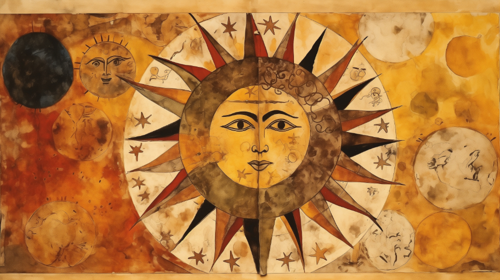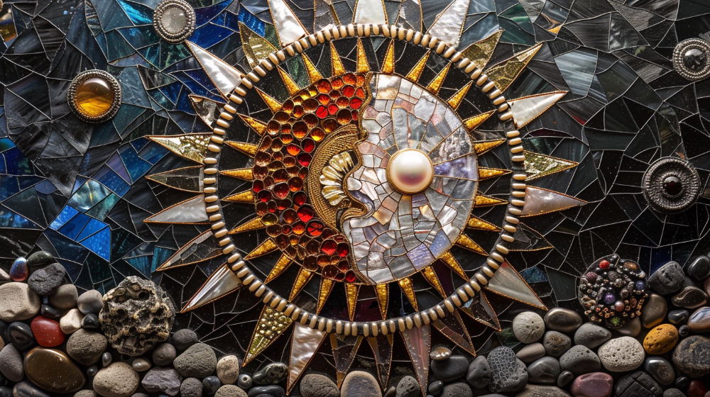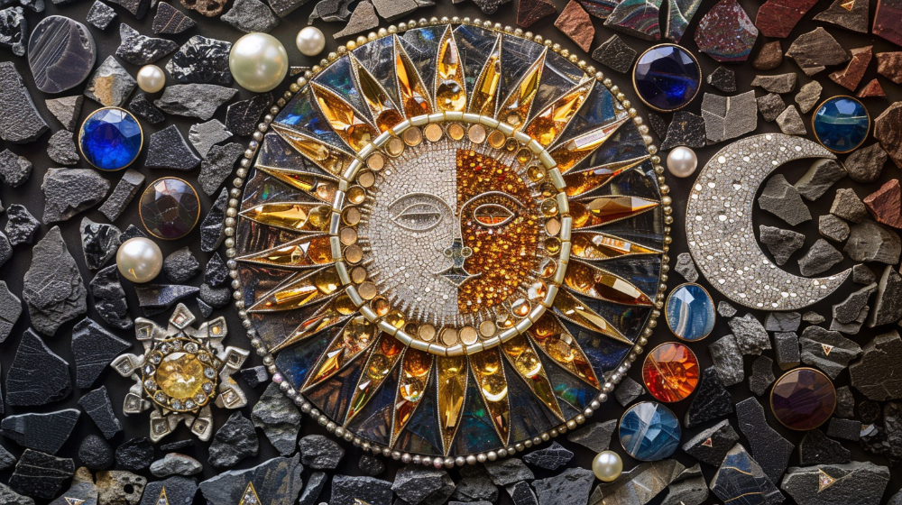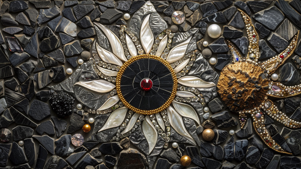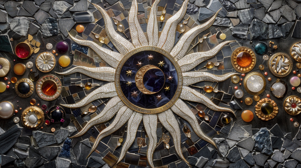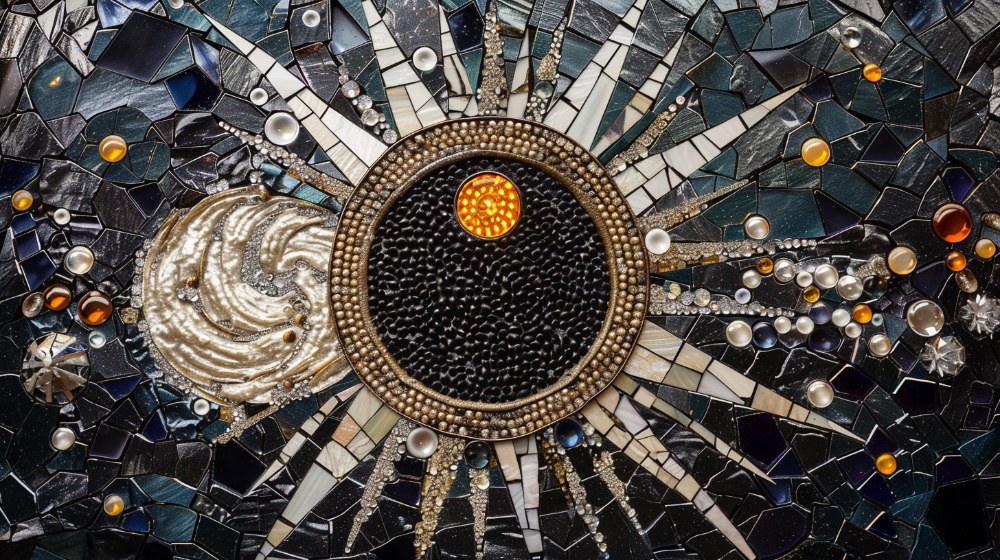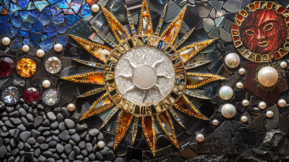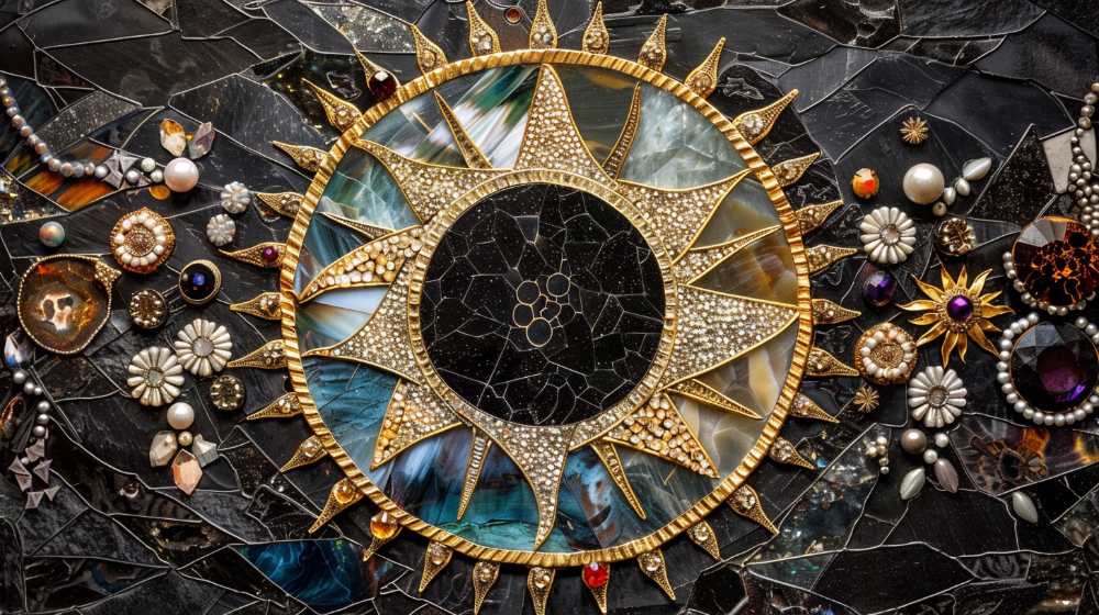 Je cherche toujours ma lumière, mon astre. J'ai demandé à Midjourney de me concocter des soleils en vitrail, puis y ai rajouté des pierres précieuses, du basalte. J'avais déjà demandé quelques soleils à la mode Egon Schiele. L'ordinateur fut inventif et j'ai du mal à choisir. Je ne me lasse pas de cet imaginaire démesurément plagiateur. Il me permet de construire mes décors. Moi qui me promenais pour photographier le monde, me voilà à tapisser mes yeux de diamants computés.